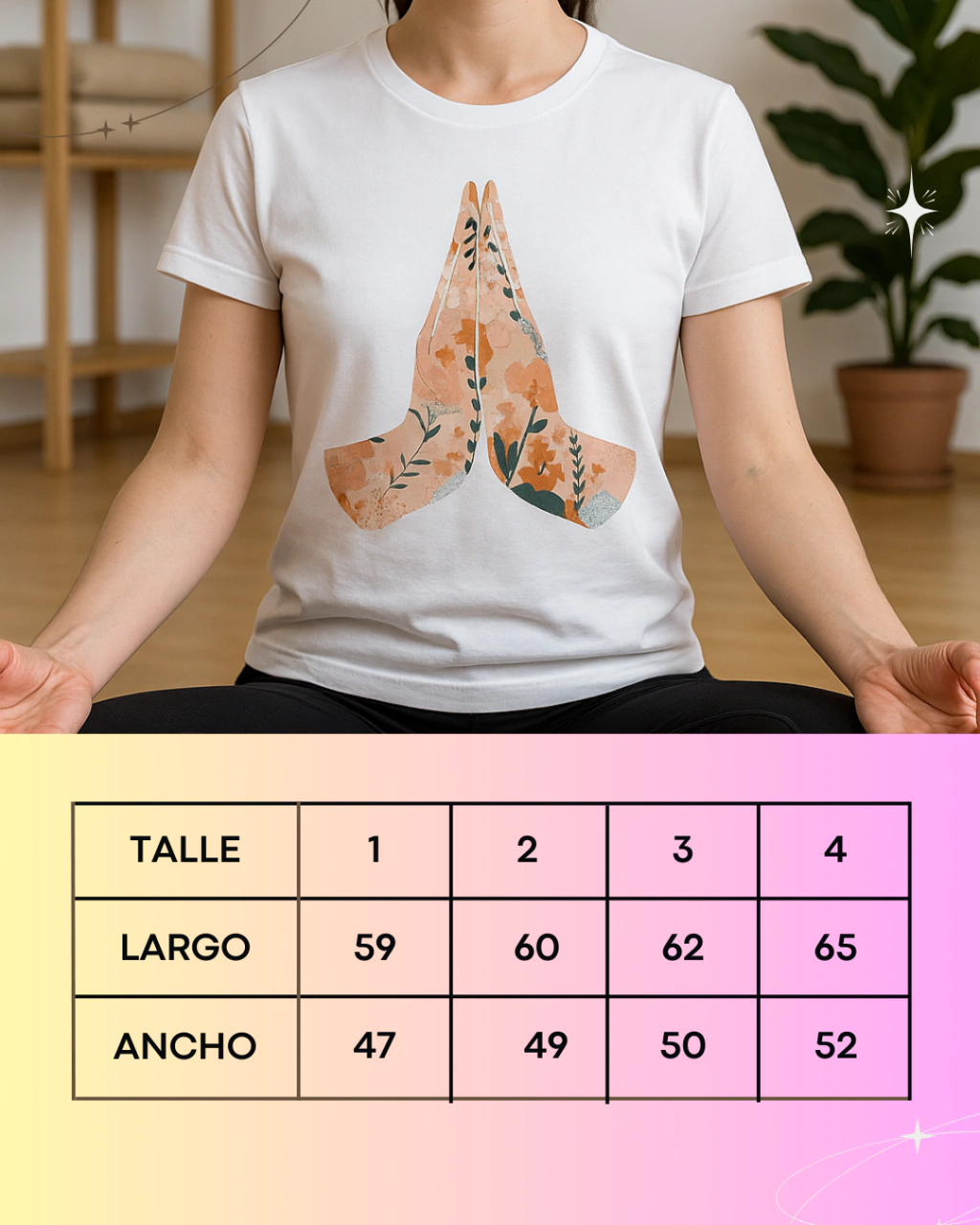 Consulta nuestra tabla de talles : https://tiendayogini.com.ar/guia-de-talles/para elegir la opción que mejor se adapte a ti. ¡No olvides comparar con una remera de algodón que ya tengas!